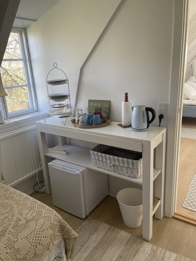 Vi tilbyder tre lyse og romantiske værelser, Annas kammer og Annas værelse som deler badeværelse. Det tredje værelse er Annas suite deluxe, som har eget bad og tekøkken.