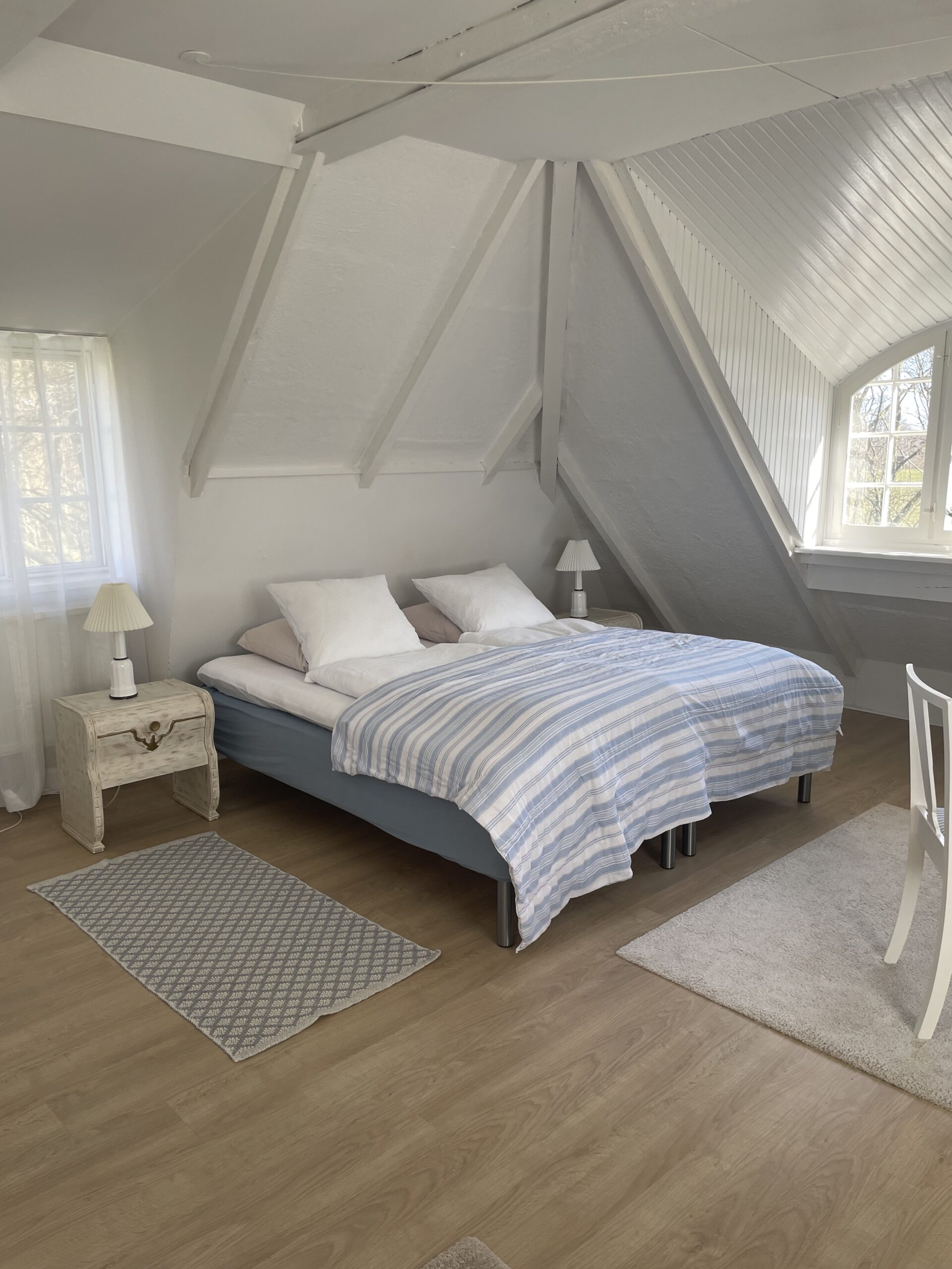 12 m2. 150 cm bred seng. Inklusiv linned, håndklæder og morgenbrunch.